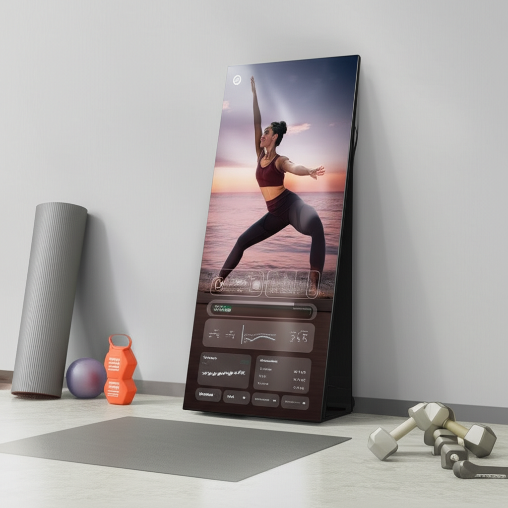 Interactive fitness mirror with AI personal trainer, real-time form correction, and access to 1000+ workout classes.